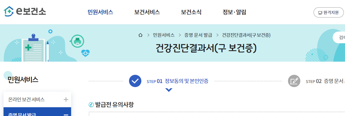 보건증 인터넷 발급 방법