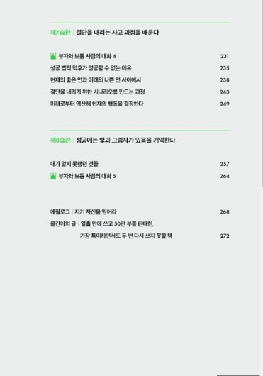 또 간다 마사노리는 "성공은 결단력에서 시작된다"고 말하며, 성공을 위해서는 신속한 판단과 결단력이 중요하다고 말한다. 신속하고 올바른 결정을 내리는 방법을 배워야 한다. 다양한 정보를 분석하고, 자신의 직관을 활용하여 빠르게 결정을 내릴 수 있어야 한다.